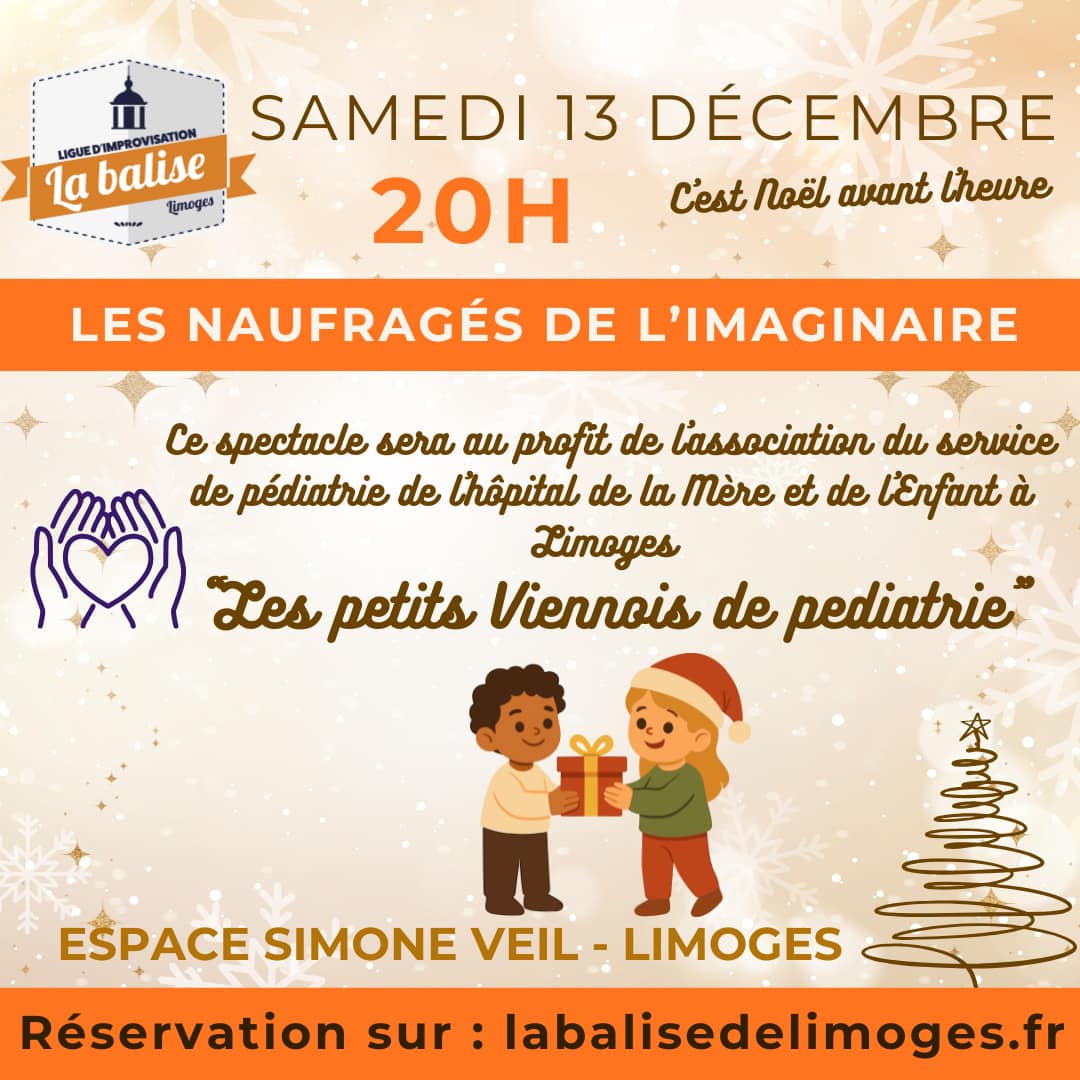 Ils sont de retour, les Naufragés de l’Imaginaire sont là pour vous emmener dans des mondes extraordinaires basés sur vos idées ! Cette année l’intégralité de la recette de la soirée sera reversée à l’association du service pédiatrique de l’Hôpital Mère Enfant de Limoges. De plus, un spectacle jeune public sera proposé dans l’après midi (Le Livre des Histoires Perdues)